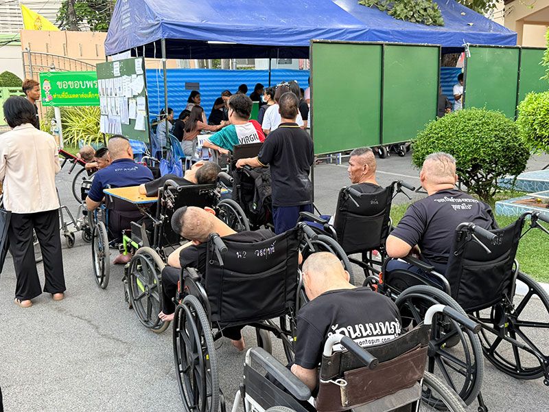 ซึ่งมีผู้ปกครองและเจ้าหน้าที่ต่างทยอยนำกลุ่มคนพิการ อาทิ บ้านนนทภูมิและบ้านต่างๆที่อยู่ในสังกัดของกระทรวงการพัฒนาสังคมและความมั่นคงของมนุษย์