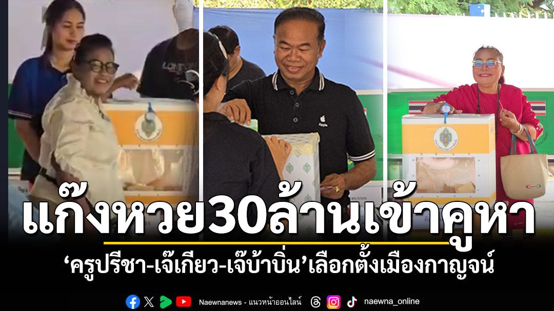 8 กุมภาพันธ์ 2569 เมื่อเวลา 08.30 น. เจ๊เกียวหวยอลเวง 30 ล้าน หรือนางปณัญชยา สุขพูล ออกเดินทางไปใช้สิทธิเลือกตั้ง สส.กาญจนบุรี เขต 1 โดยทั้งคู่ หย่อนบัตรลงคะแนน เลือก หน่วยเลือกตั้งที่ 21 ต.ปากแพรก ศูนย์พัฒนาเด็กเล็กเทศบาลเมืองกาญจนบุรี อ.เมืองกาญจนบุรี หลังหย่อนบัตร เจ๊เกียว เปิดเผยกับสื่อมวลชนว่าสำหรับการเลือกตั้งครั้งนี้เป็นครั้งแรกในชีวิตกับการต้องกาบัตรถึง 3 ใบ ก็รู้สึกว่าเป็นสิ่งที่ชัดเจนดี กับหลายๆประเด็น