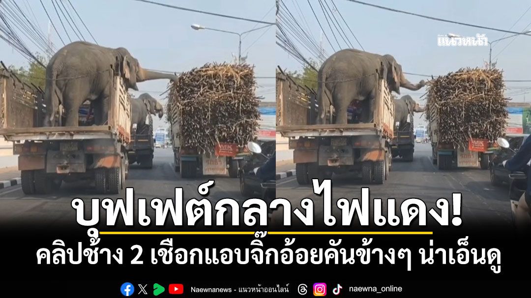 เมื่อวันที่ 8 ก.พ.2569 ผู้ใช้เฟซบุ๊ก "Jaja Sunisa" ได้โพสต์คลิปวิดีโอสุดน่ารัก ของช้างบนรถบรรทุกจำนวน 2 เชือกที่จอดติดไฟแดงอยู่บนถนน โดยด้านข้างมีรถบรรทุกอ้อยจอดติดไฟแดงอยู่ด้วยพอดิบพอดี ทำให้ช้างทั้ง 2 เชือก แอบยื่นงวงไปลักอ้อยจากรถบรรทุกคันข้างๆ กินอย่างสบายใจ โดยไม่รู้ว่าแอบมีคนถ่ายหลักฐานความน่ารักไว้แล้ว งานนี้เรียกว่างวงใครยาว สาวได้สาวเอา บุฟเฟต์อ้อยกลางไฟแดง