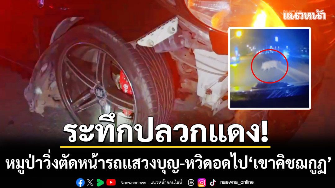ระทึกปลวกแดง! หมูป่า 50 กก. วิ่งตัดหน้าเก๋งแสวงบุญชนสนั่น-รถพังคนรอดหวิดอดไป ‘เขาคิชฌกูฏ’