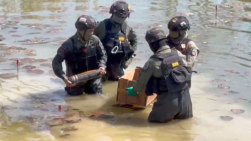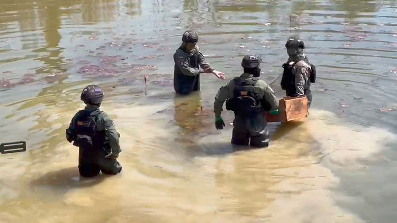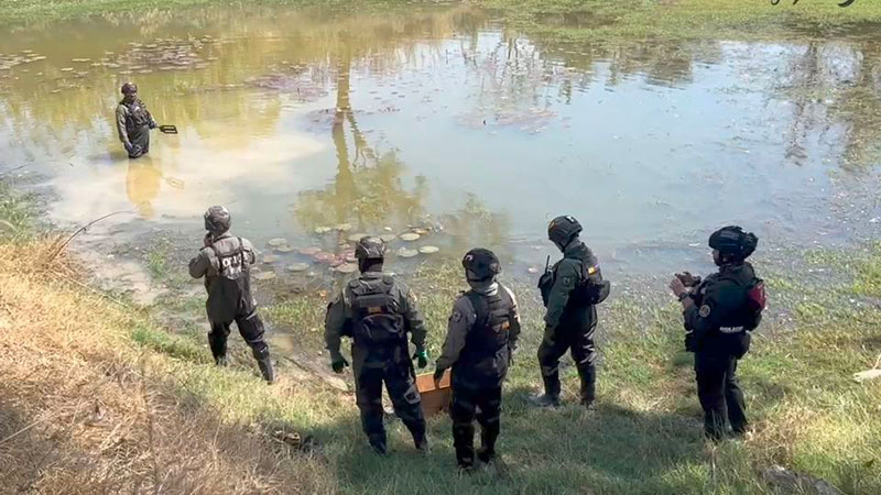 นายถนอม บัวต้น เจ้าของบ่อปลา เปิดเผยว่า เมื่อช่วงเช้าวันก่อน ได้ลงทอดแหจับปลาในสระกลางทุ่งนา หลังเหวี่ยงแหแล้วจึงลงไปคลำหา แต่กลับพบวัตถุขนาดใหญ่ผิดปกติ ลักษณะลื่นและแข็ง ไม่ใช่ปลาอย่างแน่นอน ด้วยความสงสัยว่าอาจเป็นลูกกระสุนปืน เนื่องจากก่อนหน้านี้ช่วงเกิดการปะทะ มีกระสุนตกใกล้พื้นที่นาของตนหลายครั้ง จึงรีบทิ้งแหและขึ้นจากสระทันที ก่อนแจ้งผู้นำท้องถิ่นประสานเจ้าหน้าที่เข้าตรวจสอบ