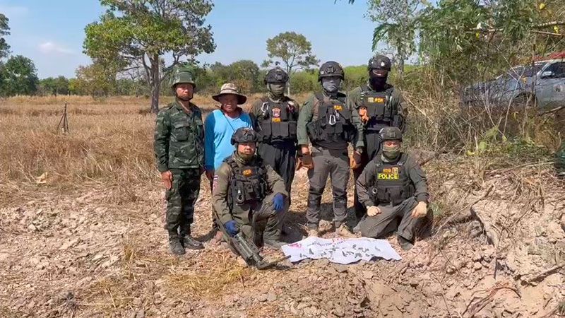 11 กุมภาพันธ์ 2569 เจ้าหน้าที่ชุดเก็บกู้และทำลายวัตถุระเบิด (EOD) กก.ตชด.22 ร่วมกับทหารหน่วยพื้นที่ชายแดน ภายใต้การอำนวยการของ พ.ต.ท.จารุบุตร เรืองศรี รอง ผกก.ตชด.22 ลงพื้นที่ตรวจสอบและเก็บกู้ลูกกระสุนปืนใหญ่ ซึ่งฝ่ายทหารกัมพูชายิงเข้ามาตกในพื้นที่หมู่บ้านชายแดน อ.กันทรลักษ์ จ.ศรีสะเกษ อย่างต่อเนื่อง
