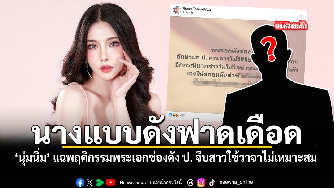อุ๊ย งานนี้มีคนหน้าชา เมื่อนางแบบสาวและครีเอเตอร์คนดัง นุ่มนิ่ม อิสรีย์ ออกมาโพสต์แฉพฤติกรรมพระเอกดังอักษรย่อ ป. ที่ทำเอาเจ้าตัวถึงกับทนไม่ไหว ต้องออกมาเตือนสติให้หัดเป็นสุภาพบุรุษบ้าง