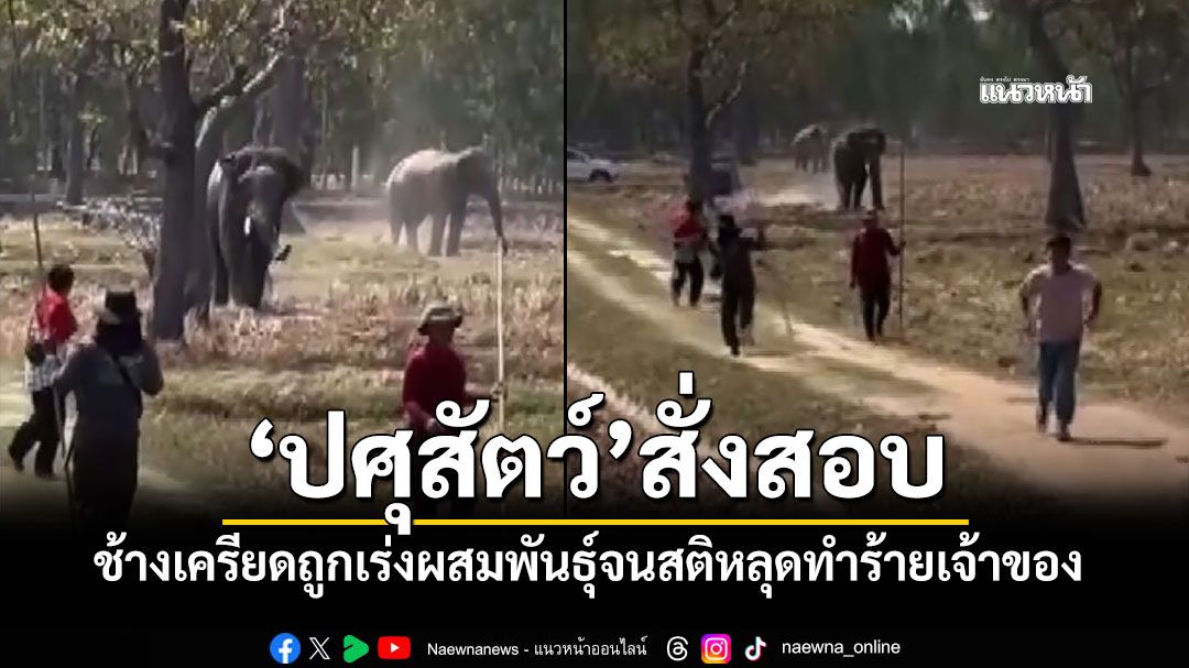 ปศุสัตว์ จ.บุรีรัมย์ สั่งเร่งตรวจสาเหตุ “เพชรอุทัย” ช้างเพศผู้ คลั่งกระทืบควานปอดฉีก เจ็บสาหัส และไล่ทำร้ายชาวบ้าน โดนเร่งผสมพันธุ์ ช้างเพศผู้ โมโห กระทืบเจ้าของ ปอดฉีกเจ็บสาหัส ไล่ทำร้ายชาวบ้าน ใช้งาแทงรถยนต์พัง 2 คัน ป้ายทางหลวงเสียหาย 5 ต้น จนท.ยิงยาสลบ 2 ชม.จึงสงบ คาดเครียดเพราะถูกบังคับผสมพันธุ์
