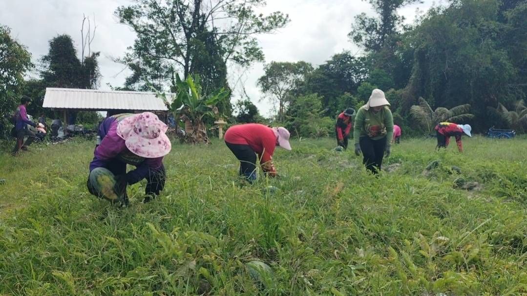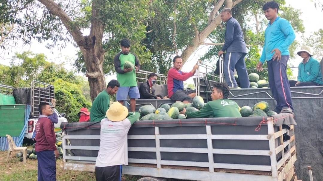 เกษตรกรเมืองสงขลามีเฮ ผลผลิตแตงโมดีเกินคาด ต้องลงแขกเพื่อนบ้านช่วยเก็บจำหน่ายสร้างรายได้