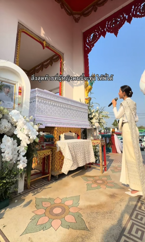 เธอกล่าวผ่านข้อความสุดซึ้งว่า "สิ่งสุดท้ายที่หนูจะทำให้พี่ได้ คือเข้มแข็งให้ได้มากที่สุด แม้ข้างในจะแตกสลาย แต่ต้องทำหน้าที่ให้ดีที่สุด เพื่อให้ได้พูดและคุยกับพี่ครั้งสุดท้าย และส่งพี่ไปสู่ภพภูมิที่ดี และหมดห่วงที่สุด"