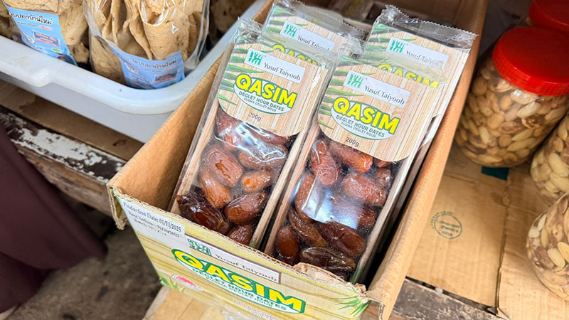 สำหรับราคาในปีนี้ มีการปรับขึ้นเล็กน้อยตามเกรดและสายพันธุ์ โดยราคาแบบลังเริ่มต้น 700 ไปจนถึงระดับพรีเมียม 4,000 บาท ส่วนราคาปลีกแบบกล่องยังคงเริ่มต้นที่ 50-100 บาท ซึ่งทางร้านยืนยันว่าถึงแม้ราคาจะขยับขึ้นตามอัตราแลกเปลี่ยน แต่ความต้องการของพี่น้องชาวไทยมุสลิมยังคงต้องการอยู่มากเพราะเป็นของทานในเดือนรอมฎอนช่วงละศีลอด