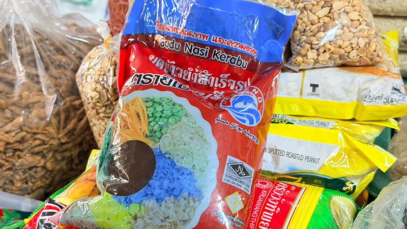 ด้านนายดือราแม เปาะมา พ่อค้าขายอาหารแห้งและอินทผลัม บอกว่า ปีนี้เริ่มเข้าสู่เดือนรอมฎอนสินค้าในตลาดเริ่มคึกคักสินค้า ที่ขายดีนอกเหนือจากอินทผาลัมแล้วยังมีชุดข้าวยำ สำหรับคนที่เวลาละศีลอดแล้วเบื่ออาหารประจำจะมีเมนูข้าวยำ เป็นตัวเลือกที่ขายดี โดยที่ร้านขาย น้ำบูดู กก.ละ 60 บาท มะพรัาวคั่ว ครึ่ง กก. 90 บาท ปลาบด ครึ่ง กก. 90 บาท และกือโปะ ห่อ 35 บาท กินคู่กับข้าวยำหรือน้ำชาอร่อยมาก