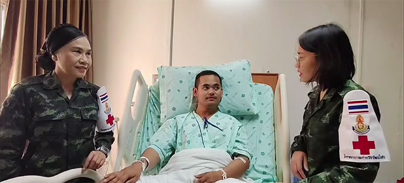 20 กุมภาพันธ์ 2569 เวลา 07.30 น. ที่อาคาร 9 ชั้นที่ 6 รพ.สุรินทร์ นพ.ชวมัย สืบนุการณ์ (ผู้อำนวยการโรงพยาบาลสุรินทร์) เข้าตรวจเยี่ยมให้กำลังใจ พลทหาร ปริวัตร์ มีมานะ อายุ 23 ปี(ขาที่12) สังกัด พัน.ร.13 (ร.6 พัน.1)ตำแหน่ง พลปืนเล็ก ร้อย.อวบ.ร.๖ พัน.๑ ร้อย.๓ ได้รับบาดเจ็บจากการเหยียบทุ่นระเบิดในขณะปฏิบัติหน้าที่ ฐานชนแดนที่พลานยาวจังหวัดศรีสะเกษ แรงระเบิด ส่งผลให้ขาซ้ายขาด มีแผลขนาดใหญ่และถูงนำตัวส่งโรงพยาบาลสุรินทร์ เมื่อ 16.40 น. วันที่ 11 กุมภาพันธ์ 2569
