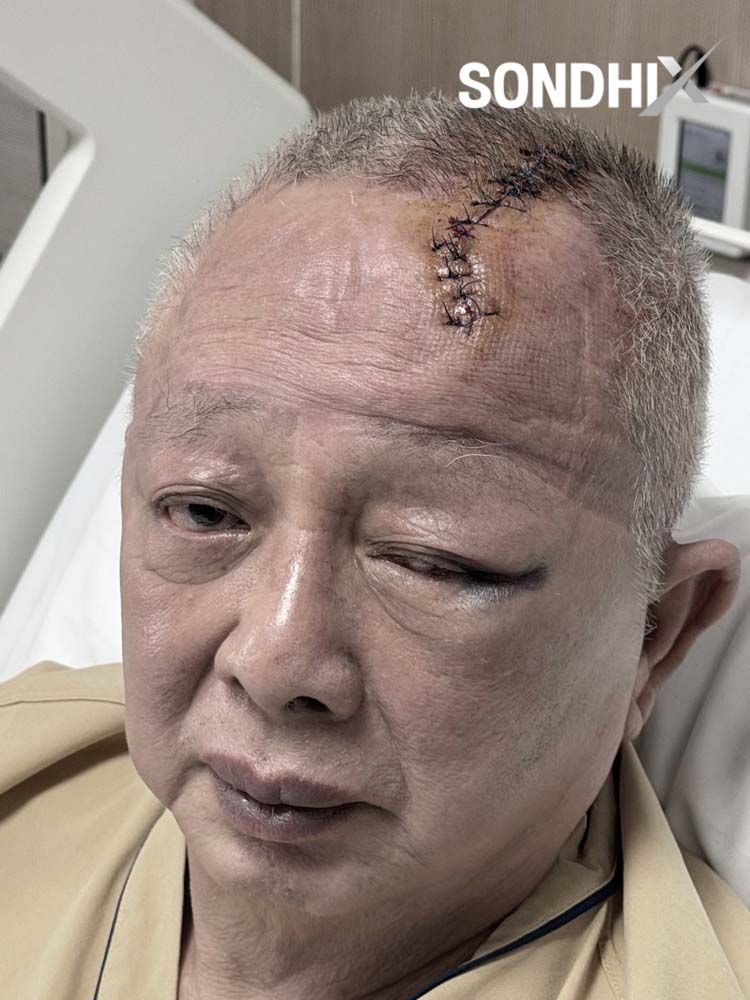 เมื่อผู้ติดตามพาไปส่งโรงพยาบาลศิริราช ปรากฏว่าบาดแผลค่อนข้างใหญ่ แพทย์ต้องเย็บ 20 เข็ม แต่จากการตรวจวินิจฉัยของแพทย์ผู้เชี่ยวชาญ รวมถึงการทำเอ็กซเรย์สมอง-ทำ CT Scan แพทย์ยืนยันว่าไม่เป็นอะไร อย่างไรก็ตามเพื่อความไม่ประมาท จึงให้นอนพักดูอาการที่โรงพยาบาล 1 คืน