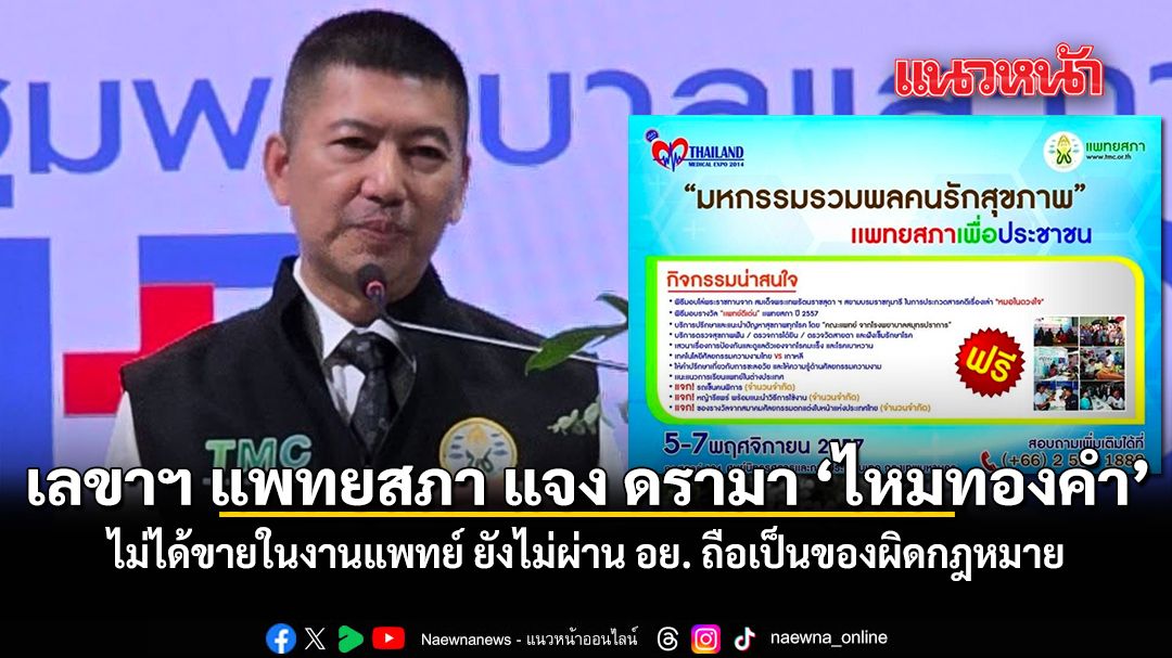 กลายเป็นประเด็นร้อนที่สังคมให้ความสนใจ หลังจากมีผู้โพสต์กล่าวอ้างว่าได้รู้จักและซื้อผลิตภัณฑ์ ไหมทองคำ จากงานประชุมของแพทยสภา จนเกิดคำถามถึงความถูกต้องตามกฎหมาย