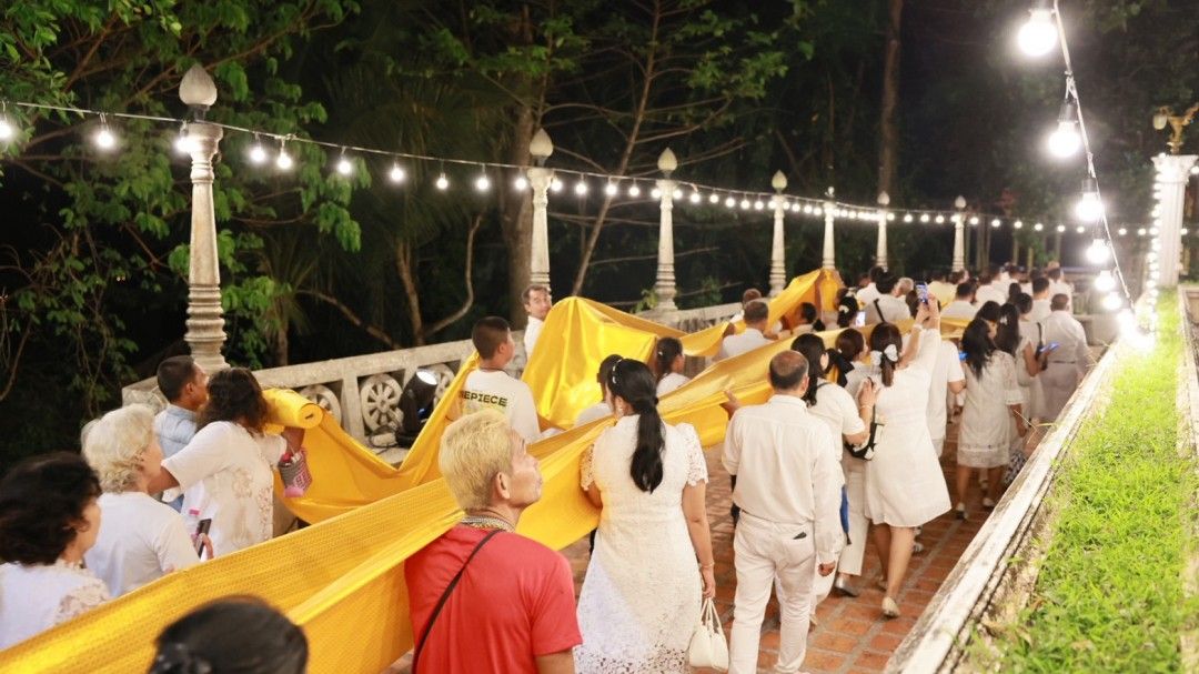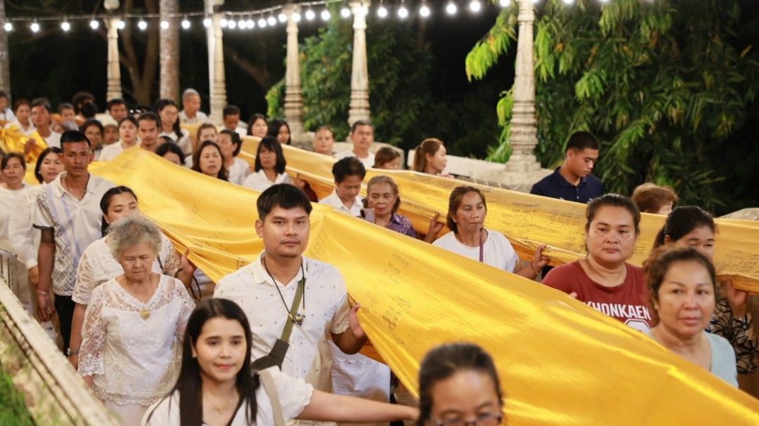 ไฮไลต์สำคัญของงานคือการจัดขบวนช้างจำนวน 19 เชือก อัญเชิญผ้าสีเหลืองทองผืนยาวเคลื่อนขบวนออกจากวัดบางเหรียง มุ่งหน้าขึ้นสู่ยอดเขาล้าน เพื่อนำผ้าไปโอบล้อมรอบฐานพระมหาธาตุเจดีย์พุทธธรรมบันลือ ซึ่งเป็นสัญลักษณ์แห่งความศรัทธาที่ชาวพังงาพึงมีต่อองค์พระสัมมาสัมพุทธเจ้า โดยงานในปีนี้จัดขึ้นอย่างยิ่งใหญ่ตั้งแต่วันที่ 23 ก.พ. - 3 มี.ค. 69 เพื่อเฉลิมฉลองเนื่องในวันมาฆบูชา