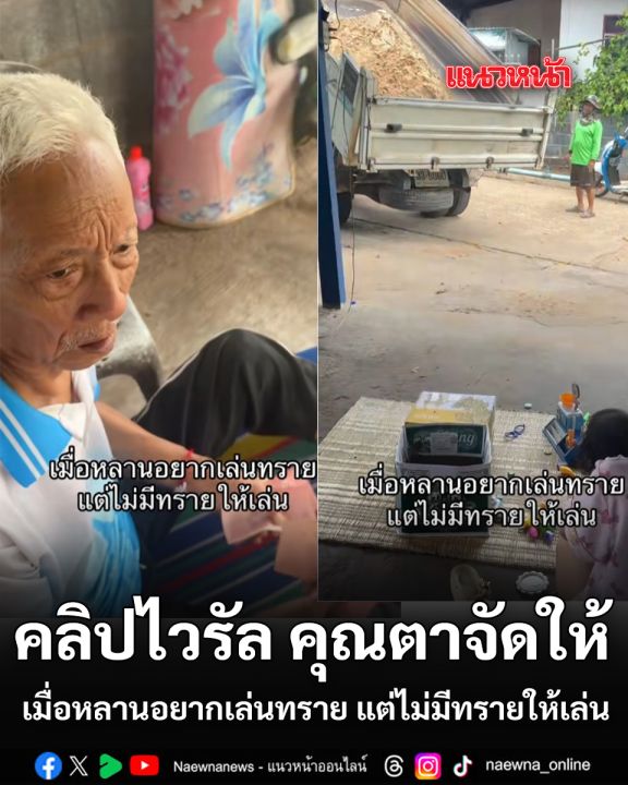 เมื่อวันที่ 28 กุมภาพันธ์ 2569 กลายเป็นไวรัลที่ทำเอาชาวเน็ตยิ้มแก้มปริกันถ้วนหน้า เมื่อผู้ใช้โซเชียลแห่แชร์คลิป Tiktok ของคุณ namtarn0052 เป็นเรื่องราวสุดน่ารักของคุณตาท่านหนึ่งที่ต้องรับมือกับความต้องการของหลานรักในวันพักผ่อน เมื่อเจ้าตัวเล็กเกิดอยากจะเล่นทรายขึ้นมาดื้อ ๆ แต่ติดตรงที่บริเวณบ้านไม่มีกองทัพทรายหรือสนามทรายให้เล่นเหมือนที่โรงเรียนหรือห้างสรรพสินค้า