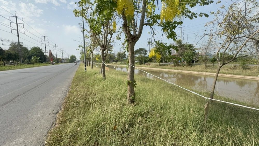 วันที่ 7 มี.ค. 2569 ที่ริมถนนวิเศษชัยชาญ-โพธิ์ทอง ตำบลศาลเจ้าโรงทอง อำเภอวิเศษชัยชาญ จังหวัดอ่างทอง พบว่าบริเวณต้นไม้ริมถนนขนานกับคันคลอง มีชาวบ้านนำเชือกปอไปผูกและเขียนป้ายจองที่กันเป็นระยะทางยาวกว่า 2 กิโลเมตร ตั้งแต่สี่แยกไฟแดงไปจนถึงหน้าวัดคูมะนาวหวาน ซึ่งชาวบ้านเรียกว่า “ถนนข้าวสุก” สถานที่เล่นน้ำสงกรานต์ชื่อดังของจังหวัดอ่างทอง โดยการขึงเชือกและเขียนป้ายจองถือเป็นสัญลักษณ์การจับจองพื้นที่เพื่อวางขายของและสินค้าในช่วงเทศกาลสงกรานต์ที่กำลังจะมาถึง