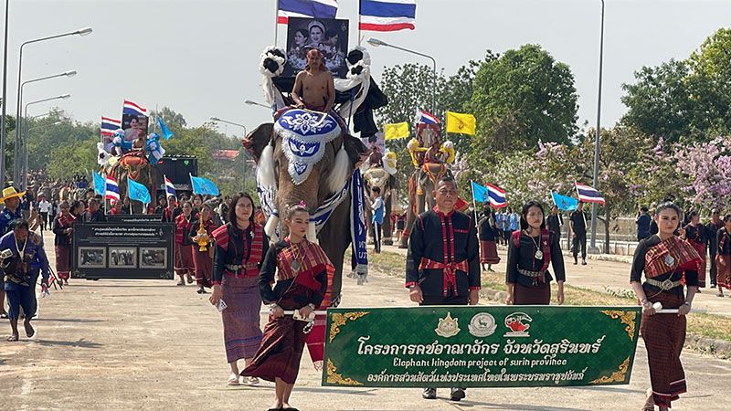13 มีนาคม 2569 ที่บริเวณวงเวียนพระครูปะกำ โครงการคชอาณาจักร จ.สุรินทร์ องค์การสวนสัตว์แห่งประเทศไทย บ้านภูดิน ตำบลกระโพ อำเภอท่าตูม จังหวัดสุรินทร์ นายกรีติคุณ กรีธาพล ผู้จัดการโครงการคชอาณาจักร จังหวัดสุรินทร์ องค์การสวนสัตว์แห่งประเทศไทย พร้อมชาวช้าง นำช้างในโครงการการจำนวน 109 เชือก ร่วมจัดกิจกรรมเนื่องในวันช้างไทย 13 มีนาคม ประจำปี 2569 ขึ้น โดยมีนายรองรัตน์ จงอุตส่าห์ ปลัดจังหวัดสุรินทร์ เป็นประธานนำประกอบกิจกรรมต่างๆ