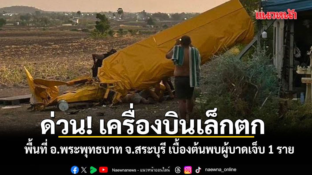 ด่วน! มูลนิธิร่วมกตัญญู สระบุรี,นคร88 เร่งตรวจสอบเหตุเครื่องบินเล็กตก พื้นที่ อ.พระพุทธบาท จ.สระบุรี เบื้องต้นพบผู้บาดเจ็บ 1 ราย เร่งนำตัวส่งโรงพยาบาล