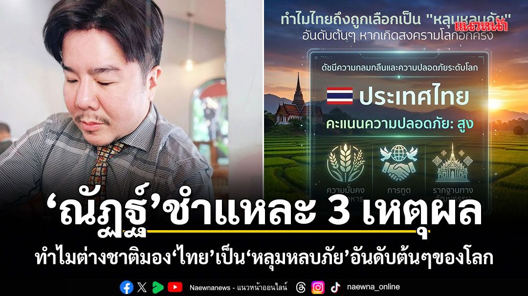 16 มีนาคม 2569 ณัฏฐ์ มงคลนาวิน ผู้เชี่ยวชาญด้านการตลาดดิจิทัล ซี่งมีผู้ติดตามจำนวนมากในโซเชียลมีเดีย โพสต์ข้อความผ่านเฟซบุ๊ก ระบุว่า ชำแหละเหตุผลที่ต่างชาติต้องรีบมากว้านซื้อที่พักในไทย อะไรทำให้ประเทศไทยของเราคือ "Safe Haven" อันดับต้นๆ หากเกิดสงครามโลกครั้งที่ 3?