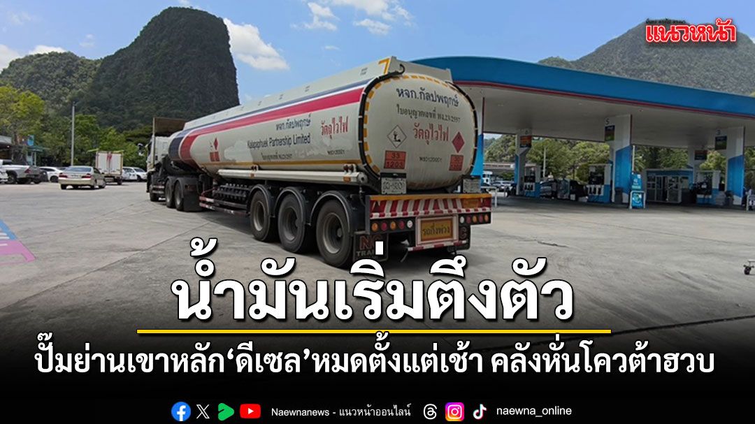 สถานการณ์น้ำมันเริ่มตึงตัว ปั๊มย่านเขาหลักดีเซลหมดตั้งแต่เช้า ขณะปั๊มในเมืองยังเปิดบริการตามปกติ หลังได้โควต้าน้ำมันจากคลังลดลง 30-40%