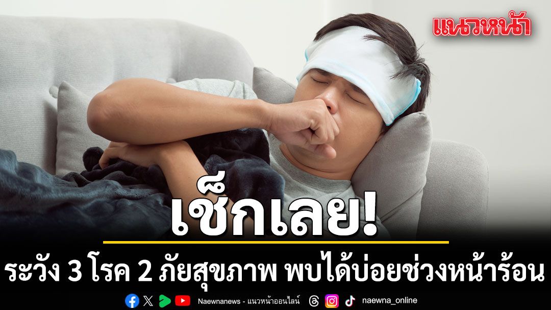 กรมควบคุมโรค กระทรวงสาธารณสุข ออกประกาศเตือนประชาชนให้ระมัดระวัง 3 โรค และ 2 ภัยสุขภาพ ที่มีแนวโน้มพบผู้ป่วยเพิ่มขึ้นในช่วงฤดูร้อน พร้อมแนะนำวิธีป้องกันตนเองอย่างถูกต้อง เพื่อลดความเสี่ยงต่อการเจ็บป่วยและการเสียชีวิต