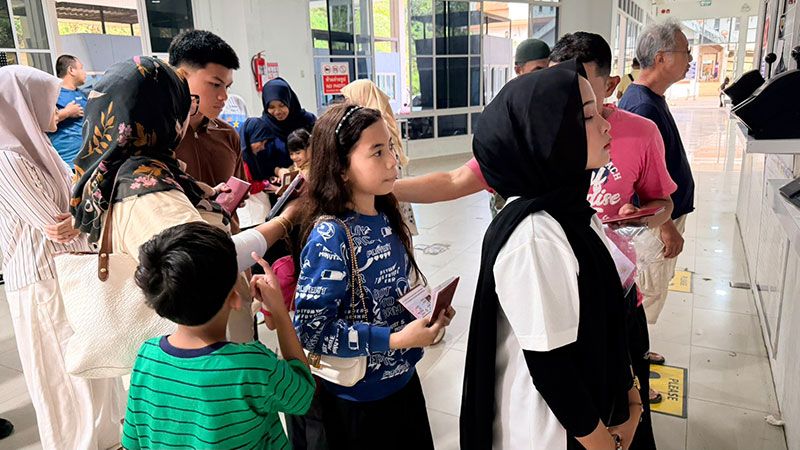 19 มีนาคม 2569 บรรยากาศที่ด่านพรมแดนเบตง อ.เบตง จ.ยะลา ก่อนเทศกาลฮารีรอยอ ปีนี้ไม่คึกคัก แรงงานไทยและนักท่องเที่ยวชาวมาเลเซีย เดินทางน้อยกว่าทุกปีที่ผ่านมา ซึ่งส่วนใหญ่เดินทางมุ่งหน้ากลับภูมิลำเนาและเดินทางเข้ามาท่องเที่ยวในช่วงเทศกาลฮารีรายอ ขณะเดียวกันเจ้าหน้าที่ประจำด่านพรมแดนเบตง และหน่วยงานที่เกี่ยวข้องอำนวยความสะดวก และตรวจเอกสาร ให้คำแนะนำในการใช้รถยนต์ในการท่องเที่ยวชี้แจงปัญหาน้ำมันในพื้นที่ก่อนผ่านแดน