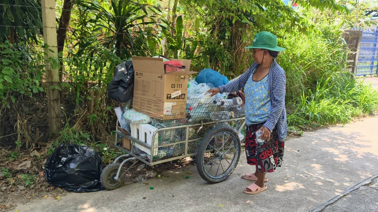 โดยยายเตียมจะออกเดินเก็บของเก่าทุกวัน ตามกองขยะและข้างทางที่ชาวบ้านนำมาทิ้งไว้ ก่อนจะเข็นรถกลับบ้านไปคัดแยก เพื่อนำไปขายเป็นรายได้เล็กๆ น้อยๆ ท่ามกลางภาระหนักในการดูแลสามีที่ป่วยติดเตียงไม่สามารถช่วยเหลือตัวเองได้