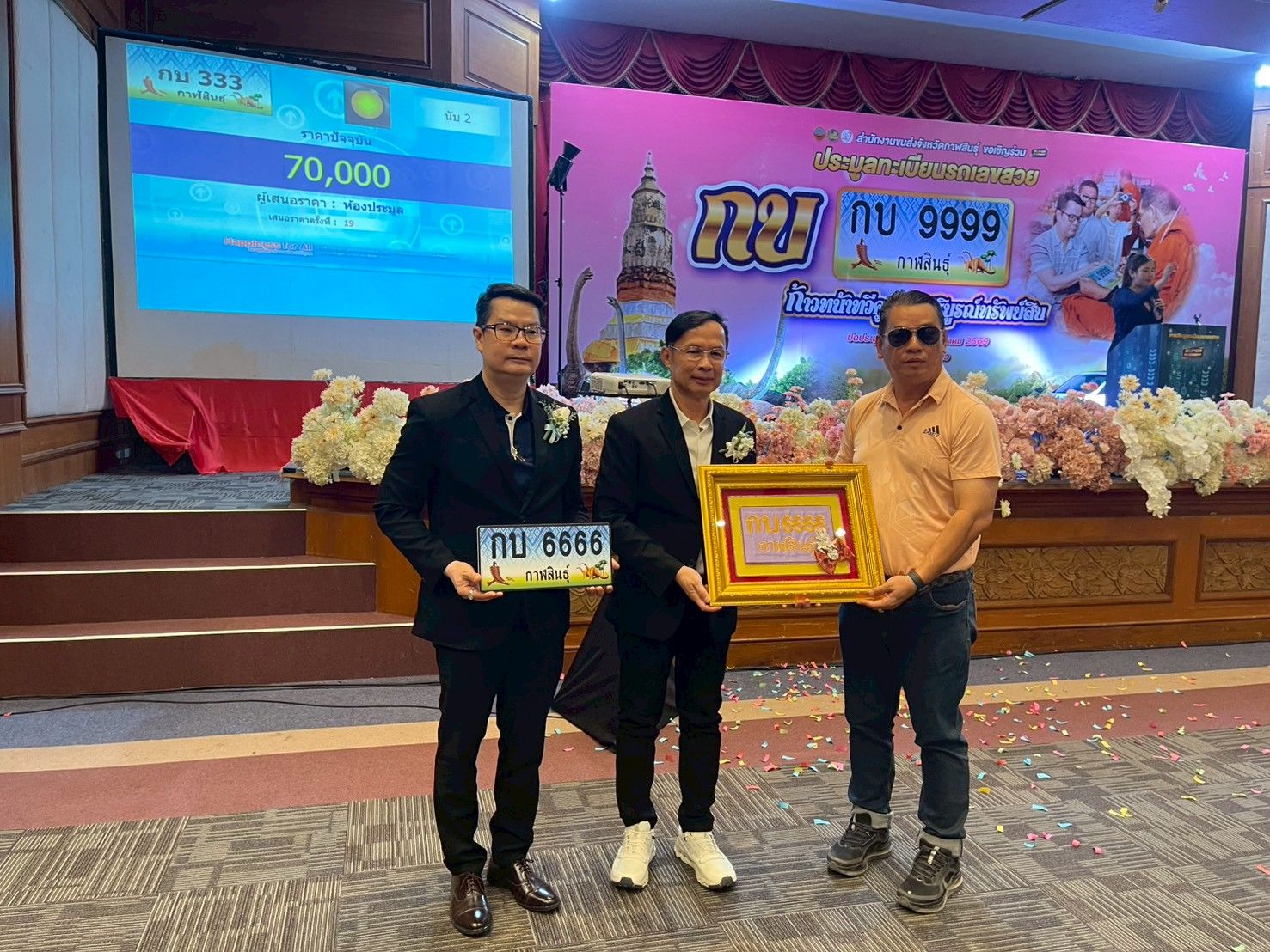 วันที่ 21 มีนาคม 2569 ที่ห้องทศพร โรงแรมริมปาว อ.เมือง จ.กาฬสินธุ์ นายชีพ น้อมเศียร รองอธิบดีกรมการขนส่งทางบก เป็นประธานพิธีเปิดการปิดการระบบประมูลหมายเลขทะเบียนรถเลขสวย หมวดอักษร “กบ” จังหวัดกาฬสินธุ์ ซึ่งเป็นที่ต้องการหรือเป็นที่นิยมของประชาชน สำหรับ รถยนต์นั่งส่วนบุคคลไม่เกิน 7 คน (รถเก๋ง รถแวน รถกระบะสี่ประตู) หมวดอักษร “กบ” ก้าวหน้าทวีคูณ บริบูรณ์ทรัพย์สิน จำนวน 301 หมายเลข ซึ่งได้รับความเมตตาจากพระเทพวัชรธรรรมโสภณ (หลวงปู่ศิลา สิริจันโท) อธิษฐานจิตปลุกเสกทุกแผ่น เพื่อความเป็นสิริมงคลแก่ผู้ครอบครอง