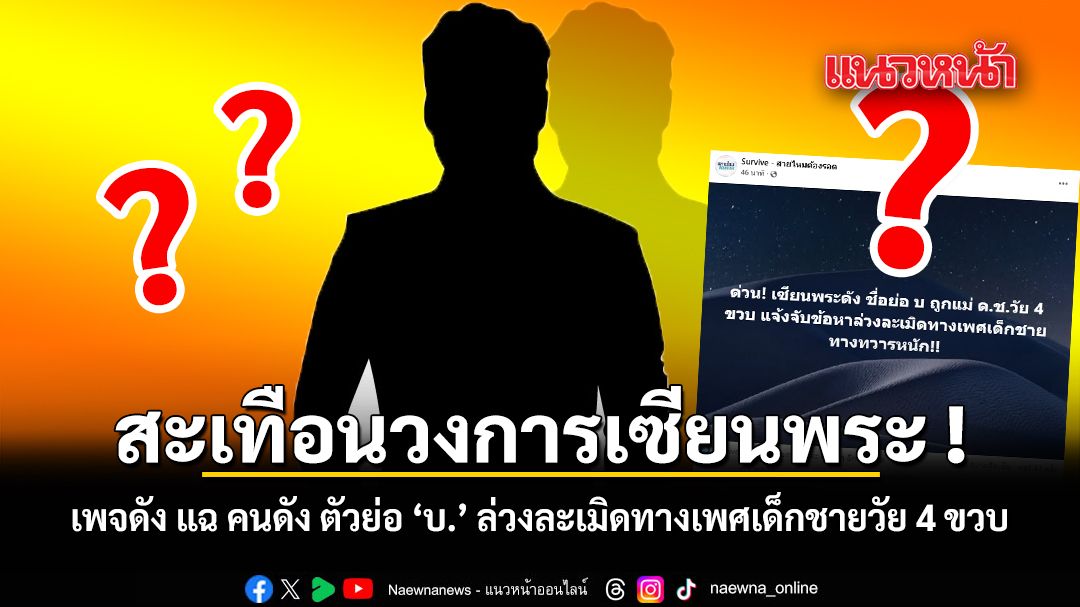 วันนี้ 22 มีนาคม 2569 กลายเป็นประเด็นร้อนฉ่าบนโลกโซเชียลทันที เมื่อเพจเฟซบุ๊กชื่อดังอย่าง Survive - สายไหมต้องรอด ได้ออกมาโพสต์ข้อความทิ้งระเบิดลูกใหญ่ระบุว่า "ด่วน! เซียนพระดัง ชื่อย่อ บ ถูกแม่ ด.ช.วัย 4 ขวบ แจ้งจับข้อหาล่วงละเมิดทางเพศเด็กชายทางทวารหนัก!!"