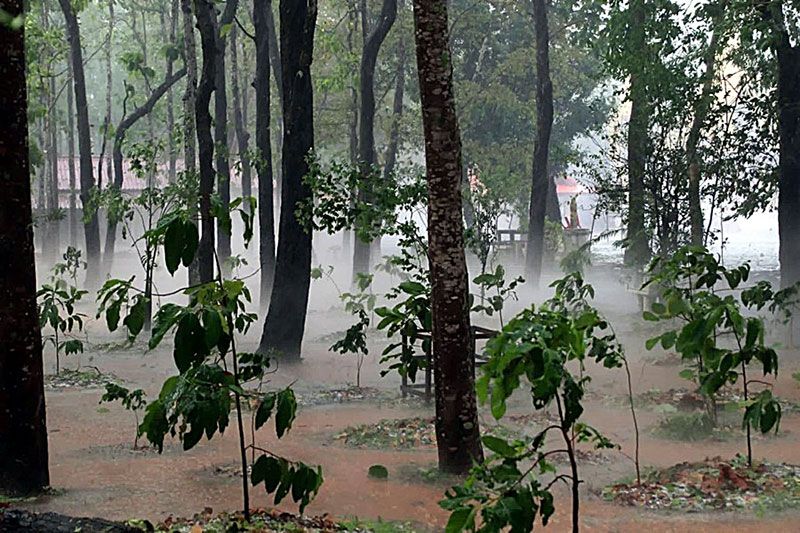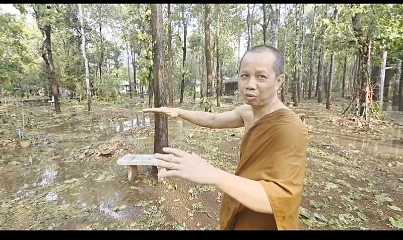 พระครูภาวนาสุตาภรณ์ เจ้าอาวาสวัดป่ามหาชัย ได้พาผู้สื่อข่าวเดินสำรวจรอบวัด พร้อมเปิดเผยว่าขณะนั้นมีลมฝนพัดกระหน่ำ และลูกเห็บหล่นลงมาใส่หลังคาดังเปาะแปะๆ ก่อนจะรัวลงมาโครมใหญ่ เหลียวมองออกไปด้านนอก ลูกเห็บเกลื่อนกลาดขาวโพลนราวหิมะจึงถ่ายคลิปไว้ หลังฝนหยุดก็ออกเดินดูความเสียหาย โชคดีที่หลังคาศาลา กุฎิ ส่วนใหญ่มุงด้วยไม้ จึงไม่ได้รับความเสียหาย ก่อนจะชี้ให้ดูใบไม้ว่าลูกเห็บมีความรุนแรงแค่ไหน ขนาดใบไม้ยังขาดวิ่น ยอมรับว่าไม่เคยพบเห็นพายุลักษณะนี้มาก่อน มันเป็นตามธรรมชาติ ไม่ใช่ลางบอกเหตุอะไร โดยวัดป่ามหาชัยอยู่ห่างไกลชุมชน รอบวัดจึงไม่มีบ้านเรือนประชาชนอาศัยอยู่