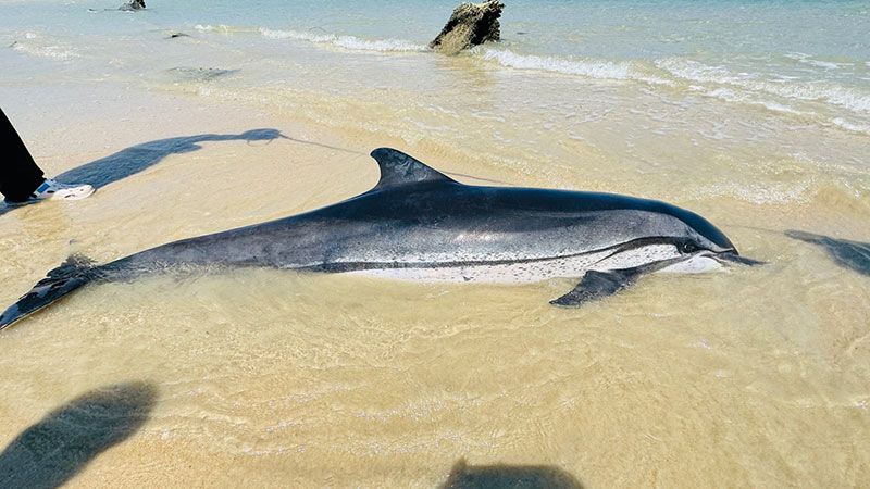 จากการตรวจสอบพบว่าเป็นโลมาชนิดลายแถบ จำนวน 1 ตัว อยู่ในสภาพเสียชีวิต วัดความยาวได้ประมาณ 2.13 เมตร โดยพบบาดแผลเล็กน้อยบริเวณแก้มด้านซ้าย เบื้องต้นเจ้าหน้าที่ได้ทำการขนย้ายซากขึ้นฝั่ง ก่อนส่งมอบให้ศูนย์ช่วยเหลือสัตว์ทะเลหายากสิรีธาร จังหวัดภูเก็ต เพื่อดำเนินการผ่าพิสูจน์และหาสาเหตุการเสียชีวิตอย่างละเอียดต่อไป