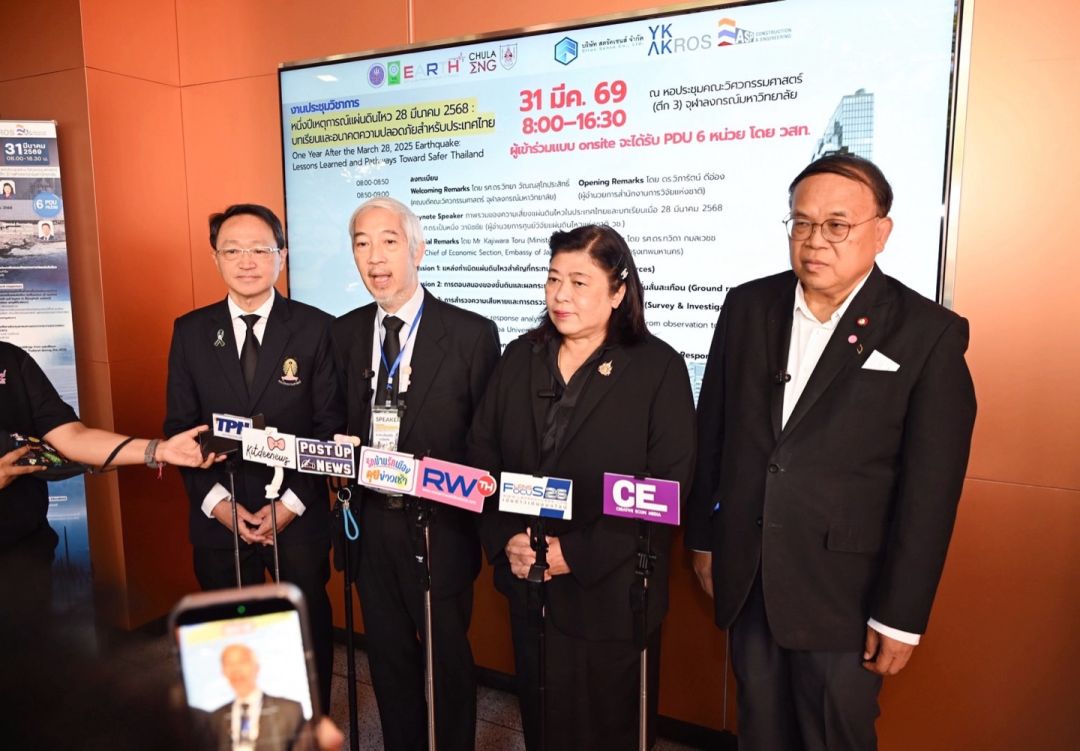 สำนักงานการวิจัยแห่งชาติ(วช.) กระทรวงการอุดมศึกษา วิทยาศาสตร์ วิจัยและนวัตกรรม ร่วมกับ ศูนย์วิจัยแผ่นดินไหวแห่งชาติ (EARTH) และคณะวิศวกรรมศาสตร์ จุฬาลงกรณ์มหาวิทยาลัย จัดงานประชุมวิชาการ “หนึ่งปีเหตุการณ์แผ่นดินไหว 28 มีนาคม 2568 : บทเรียนและอนาคตความปลอดภัยสำหรับประเทศไทย” (One Year After the March 28, 2025 Earthquake: Lessons Learned and Pathways Toward Safer Thailand) โดย ดร.วิภารัตน์ ดีอ่อง ผู้อำนวยการสำนักงานการวิจัยแห่งชาติ กล่าวเปิดงาน พร้อมด้วย รศ.ดร.วิทยา วัณณสุโภประสิทธิ์ คณบดีคณะวิศวกรรมศาสตร์ จุฬาลงกรณ์มหาวิทยาลัย กล่าวต้อนรับ, ศ.ดร.เป็นหนึ่ง วานิชชัย ผู้อำนวยการศูนย์วิจัยแผ่นดินไหวแห่งชาติ กล่าวถึงภาพรวมของความเสี่ยงแผ่นดินไหวในประเทศไทย, Mr. Kajiwara Toru อัครราชทูตและหัวหน้าฝ่ายเศรษฐกิจ สถานเอกอัครราชทูตญี่ปุ่น, รศ.ดร.ทวิดา กมลเวชช รองผู้ว่าราชการกรุงเทพมหานคร และ Prof. Shoji Gaku จาก University of Tsukuba ร่วมบรรยายพิเศษ ณ หอประชุมคณะวิศวกรรมศาสตร์ จุฬาลงกรณ์มหาวิทยาลัย