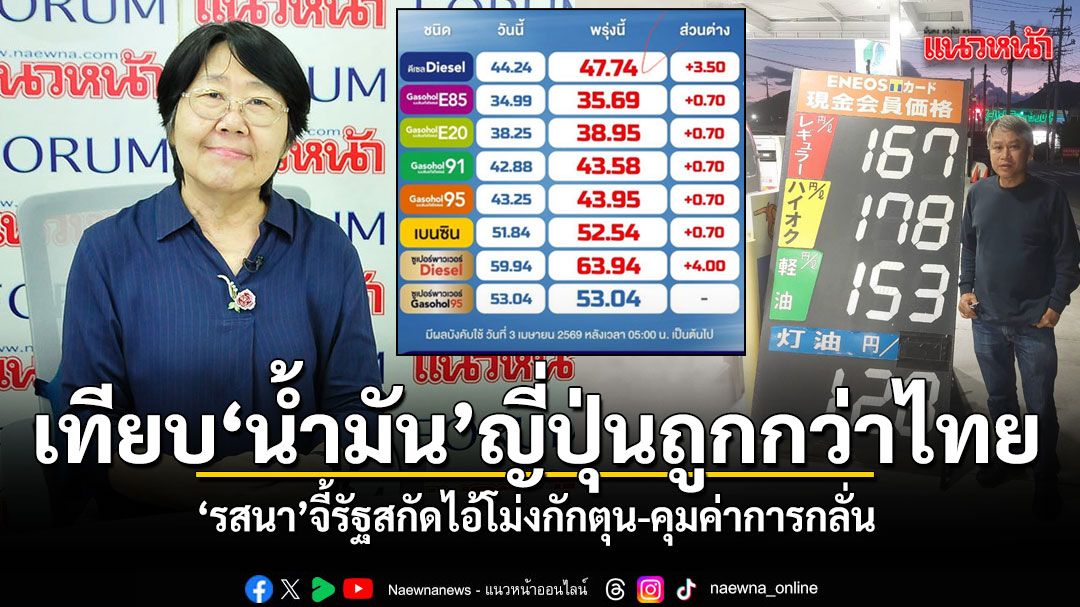 3 เมษายน 2569 นางรสนา โตสิตระกูล ประธานอนุกรรมการด้านบริการสาธารณะ พลังงาน และสิ่งแวดล้อม สภาผู้บริโภค ออกมาตั้งข้อสังเกตถึงความผิดปกติของราคาน้ำมันในประเทศไทยที่ปรับตัวสูงขึ้นอย่างต่อเนื่อง โดยมีการนำข้อมูลราคาน้ำมันจากประเทศญี่ปุ่นมาเปรียบเทียบให้เห็นความต่าง พร้อมจี้รัฐบาลตรวจสอบ โดยโพสต์ระบุว่า