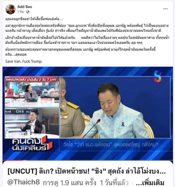 ต้องกราบขอบพระคุณท่านนายกหนูของผมที่ส่งคุณ เอกนัฏ พร้อมพันธุ์ มาแก้วิกฤตน้ำมันแพงในครั้งนี้ครับ….สุดยอด
