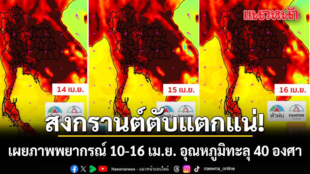 วันที่ 10 เมษายน 25669 เพจเฟซบุ๊ก "พยากรณ์อากาศประเทศไทย" เผยภาพสภาพอากาศช่วง วันที่ 10-16 เมษายน 2569 โดยระบุข้อความว่า ดำเดือด ! โดยเฉพาะอย่างยิ่งช่วงสงกรานต์ ดำเดือดปกคลุมพื้นที่กว้าง