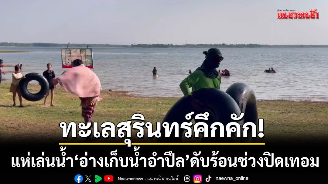 บรรยากาศการท่องเที่ยวช่วงฤดูร้อนที่ 'อ่างเก็บน้ำอำปึล' ต.เทนมีย์ อ.เมือง จ.สุรินทร์ กลับมาคึกคักอีกครั้งในช่วงปิดเทอม โดยมีประชาชนและนักท่องเที่ยวจำนวนมากพาลูกหลานมาเล่นน้ำเพื่อดับความร้อนอย่างต่อเนื่อง จนพื้นที่แห่งนี้ได้รับการขนานนามว่าเป็น “ทะเลสุรินทร์” ด้วยทัศนียภาพน้ำใสสีครามที่สวยงามและลมพัดเย็นสบายตลอดวัน