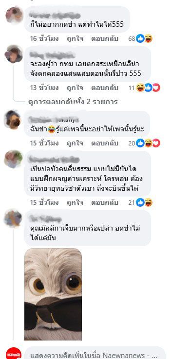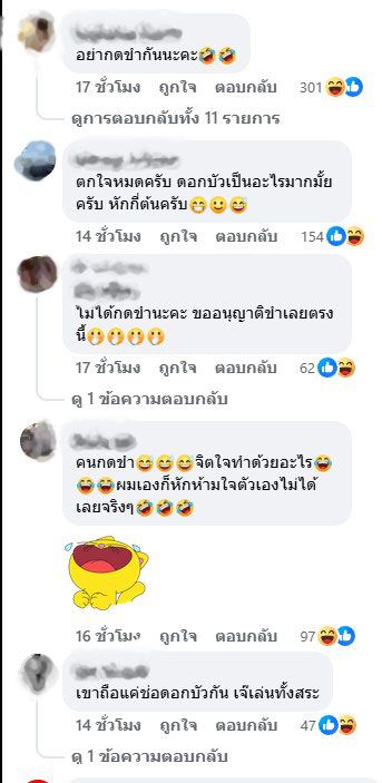 ขณะที่คอมเมนต์ ต่างพากันแซวอย่างน่ารัก อาทิ "ก็ไม่อยากกดขำ แต่ทำไม่ได้555, เขาถือแค่ช่อดอกบัวกัน เจ๊เล่นทั้งสระ, อย่ากดขำกันนะคะ, เป็นบ่อบัวคนตื่นธรรม แบบไม่มีบันได แบบฝึกผจญด่านเคราะห์ ใครหล่น ต้องมีวิทยายุทธวิชาตัวเบา ถึงจะบินขึ้นได้, สงสาร ดร. แต่ก็อดขำไม่ได้คะ, ถ้าขำ จะบาปมั้ย, ขำ แต่รักนะ ลงไปยังไง๊, ใจจริงสงสาร แต่หัวเราะไปแล้ว ขอโทษนะคะ เพิ่งเห็นตกจริง เป็นต้น"