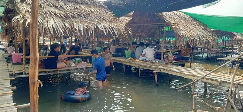 นอกจากนี้ในวันสงกรานต์จากอากาศที่ร้อนอบอ้าว ผลพวงจากการเกิดไฟป่าเป็นวงกว้าง ทำให้ชาวแม่ฮ่องสอนอีกจำนวนไม่น้อย ที่พากันไปพักผ่อนตามแม่น้ำลำธารเพื่อคลายความร้อน โดยเฉพาะบริเวณซุ้มน้ำปาย บ้านท่าโป่งแดง ต.ผาบ่อง อ.เมืองแม่ฮ่องสอน ในช่วงสงกรานต์มีประชาชน ไปนั่งดื่มกินกัน และลงเล่นน้ำปายที่ตื้นเขินกันเป็นจำนวนมากเช่นกัน ซึ่งทางคณะกรรมการหมู่บ้านท่าโป่งแดง ต้องคอยเฝ้าระวังความปลอดภัยทั้งไม่ให้มีเหตุทะเลาะวิวาท และไม่ให้มีการปล่อยให้เด็กลงเล่นน้ำตามลำพัง โดยในวันสงกรานต์มีผู้คนไม่พักผ่อนที่ซุ้มน้ำปายบ้านท่าโป่งแดงมากกว่าทุกวันหลายเท่าตัว
