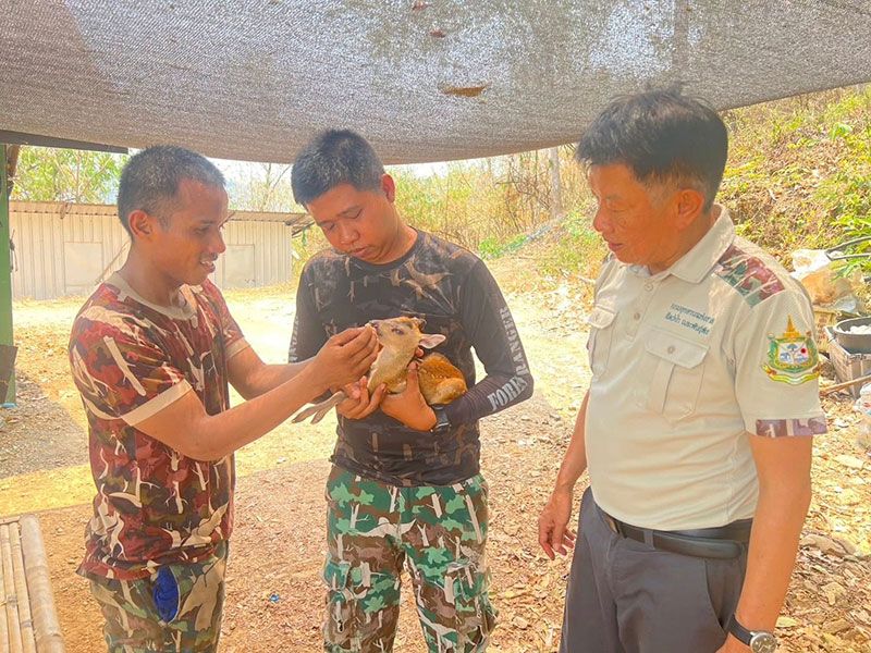 เบื้องต้น เจ้าหน้าที่ได้นำลูกเก้งลงมาปฐมพยาบาล และเตรียมอนุบาลต่อให้แข็งแรง ก่อนจะปล่อยคืนสู่ป่าธรรมชาติอีกครั้ง พร้อมตั้งชื่อให้ว่า “น้องสงกรานต์”