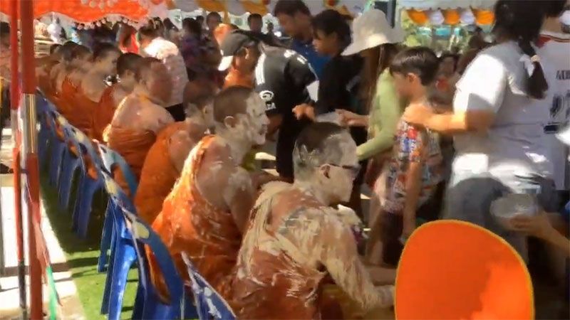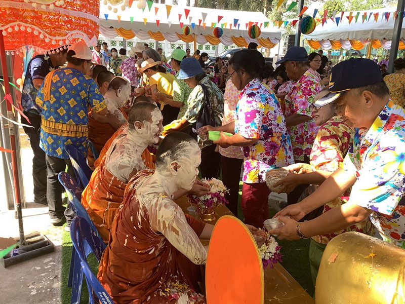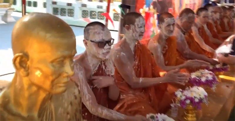 สีสันวันสงกรานต์ พระชุบแป้งทอด สงน้ำพระปะแป้ง จนพระสงฆ์หน้าขาวโพลนทั่งหน้า สร้างรอยยิ้มและความชุ่มฉ่ำใจ สะท้อนประเพณีไทยที่ใกล้ชิดระหว่างวัดกับชุมชน