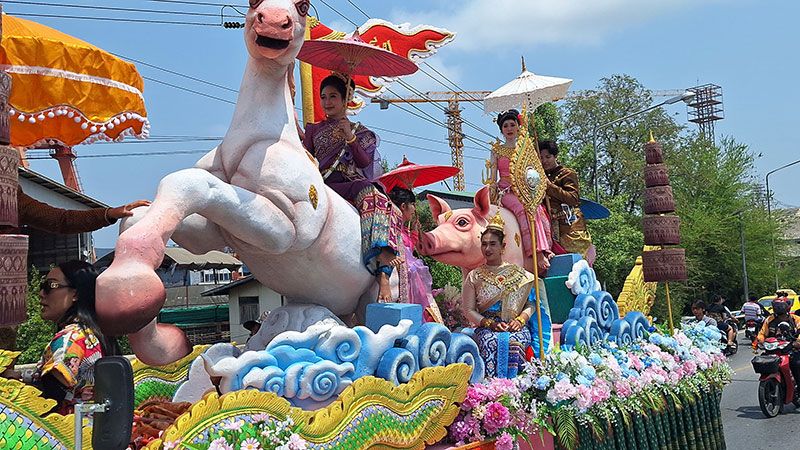 17 เมษายน 2569 เมื่อเวลา 14.30 น. บรรยากาศงานสงกรานต์พระสมุทรเจดีย์ (สงกรานต์แหลมฟ้าผ่า) เริ่มแล้วตั้งแต่ช่วง 13.00 น.ที่ผ่านมา ซึ่งมีการปล่อยขบวนรถบุปผชาติของหน่วยงานราชการในพื้นที่โดย นาย เฉลิมพล สิทธิพันธ์ นายก ทต.แหลมฟ้าผ่า เป็นประธานปล่อยรถแห่สงกรานต์ ก่อนที่จะเคลื่อนไปตลอดเส้นทางถนนสุขสวัสดิ์-ป้อมพระจุล ก่อนวกกลับบริเวณ 3 แยกพระสมุทรเจดีย์และเข้าซอยวัดแหลมฟ้าผ่า ซึ่งภายในขบวนประกอบด้วยรถบุปผชาติ-สรงน้ำพระ รถบุปผชาติ-เทพีสงกรานต์ รถเครื่องเสียงดนตรีและรถของประชาชนตามชุมชนที่เข้าร่วมขบวน