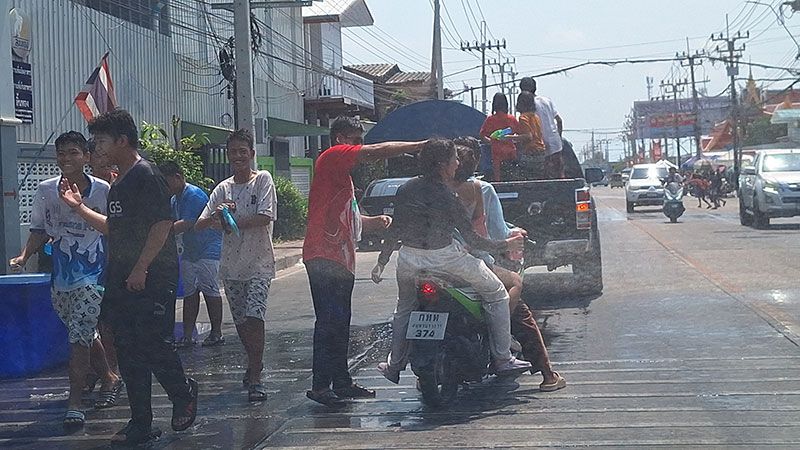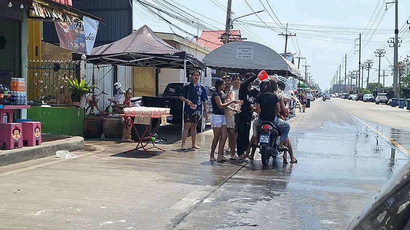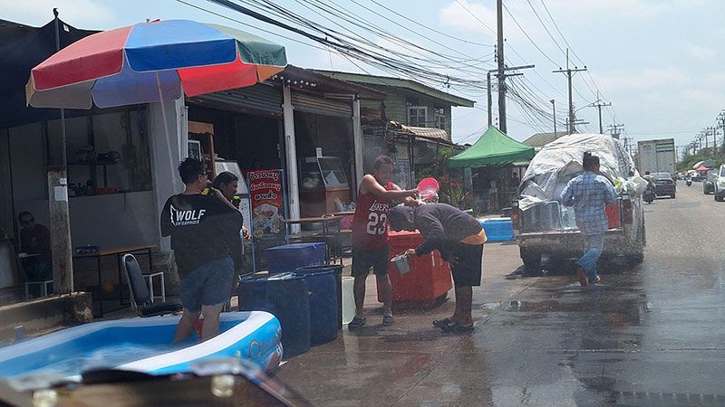 สมุทรปราการเริ่มแล้ว สงกรานต์พระสมุทรเจดีย์ วันไหลแหลมฟ้าผ่า ประชาชนออกมาเล่นสาดน้ำท่ามกลางอากาศร้อนจัด