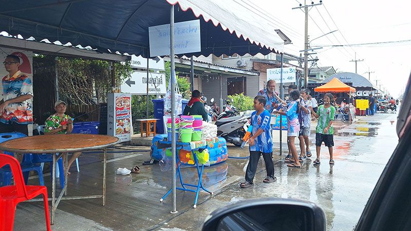 ส่วนบรรยากาศเล่นน้ำสงกรานต์ในถนนซอยวัดแหลมฟ้าผ่าและถนนแยกย่อยในเส้นทางต่างๆของพื้นที่ อ.พระสมุทรเจดีย์ ได้มีประชาชนนำเต็นท์ เครื่องเสียง รถแต่งเครื่องเสียง ถังน้ำ อ่างน้ำ สระน้ำเป่าลม มาตั้งสาดเล่นน้ำกันอย่างสนุกสนาน บางกลุ่มได้นำรถบรรทุกน้ำมาตะเวนวิ่งสาดน้ำกัน โดยมีเจ้าหน้าที่ตำรวจ ฝ่ายปกครอง กำนัน ผู้ใหญ่บ้าน อาสาสมัครกว่า 100 นาย ปล่อยแถวเข้าประจำจุดเพื่อป้องกันปัญหาอาชญากรรมและแก้ไขปัญหาการจราจรใน พื้นคาดว่าช่วงค่ำนี้จะมีประชาชนและนักท่องเที่ยวเข้าร่วมงานและเล่นสาดน้ำกว่า 3,000 คน