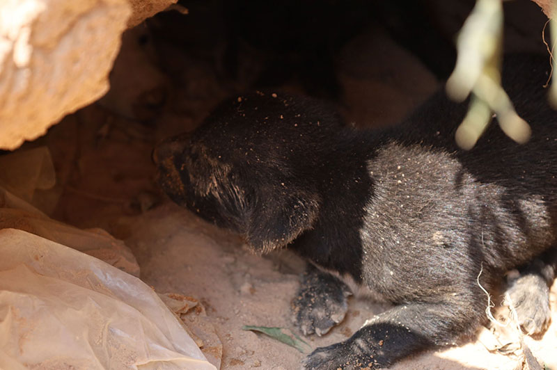 ระหว่างการลงพื้นที่ เจ้าหน้าที่พบโพรงดินจำนวนมาก ซึ่งเป็นร่องรอยการขุดของสุนัขเพื่อใช้หลบแดดและอยู่อาศัย รวมถึงพบลูกสุนัข 4 ตัวภายในโพรงดังกล่าว โดยได้ช่วยเหลือนำส่งสัตวแพทย์ดูแลเรียบร้อยแล้ว