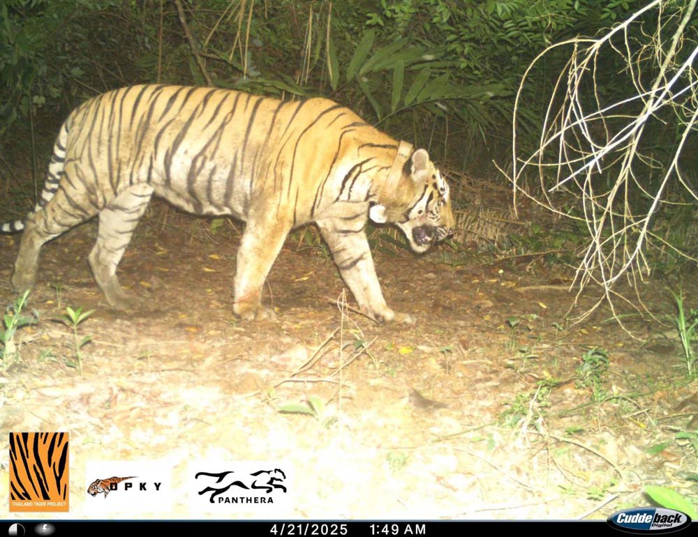 ข้อมูลจากปลอกคอเผยให้เห็นภาพชีวิตของเสือโคร่งหนุ่มผู้ทรงพลัง — ศรีโกสามีอาณาเขตหากินกว้างใหญ่ครอบคลุมทั้งสองอุทยานฯ มีตัวเมียอยู่ในความดูแล 2 ตัว และที่ชัดเจนที่สุดคือเขาได้ให้กำเนิดลูกเสือ 3 ตัวกับแม่ทับลาน (TLT-106F) ซึ่งกล้องดักถ่ายภาพบันทึกภาพไว้ได้ขณะที่แม่ทับลานเดินอวดท้องอิ่มอย่างสง่างาม