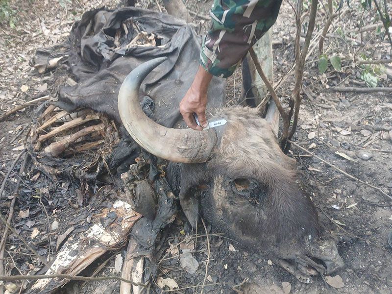 ในขณะที่เดียวกันสถานการณ์จากไฟป่าสืบสวนพบหลักฐานการล่ากระทิงในพื้นที่ชุมชนแม่คะเมยบนบ้านท่าเสลา ต.ยางน้ำกลัดเหนือ อ.หนองหญ้าปล้อง จ.เพชรบุรี โดยเจ้าหน้าที่นำซากสัตว์กลับมาชันสูตรหาสาเหตุการตายเพื่อเป็นหลักฐานยืนยัน