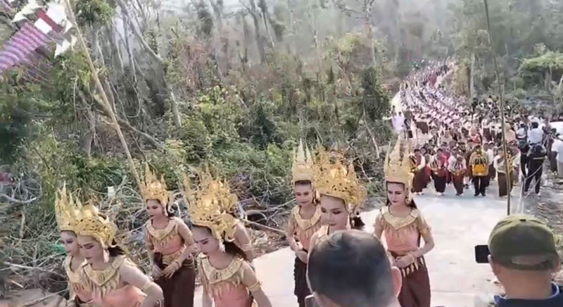 เริ่มกันที่ภาพบรรยากาศตั้งแต่เวลา 06.30 น. ที่ผ่านมา ณ ปราสาทตาควาย ตำบลบักได อำเภอพนมดงรัก จังหวัดสุรินทร์ พลังศรัทธาของชาวบ้านทั้งในพื้นที่และจังหวัดใกล้เคียง ต่างหลั่งไหลมาร่วมพิธีบวงสรวงองค์ปราสาท และพิธีวางพวงมาลา ณ อนุสาวรีย์พิทักษ์ไทย เพื่อระลึกถึงวีรกรรมความกล้าหาญ ไฮไลท์สำคัญอยู่ที่ขบวนแห่อันวิจิตรงดงาม และกองทัพนางรำกว่าหลายร้อยชีวิต ที่พร้อมใจกันสวมชุดพื้นเมืองมาร่วมร่ายรำถวายอย่างอ่อนช้อยสะดุดตา บริเวณหน้าปราสาทหินเก่าแก่ สร้างความตื่นตาตื่นใจให้กับผู้ร่วมงานเป็นอย่างมากสำหรับการจัดงานในครั้งนี้ ไม่เพียงแต่เป็นการสืบสานประเพณีอันดีงามของท้องถิ่นเท่านั้น แต่ยังเป็นกลยุทธ์สำคัญในการกระตุ้นเศรษฐกิจและการท่องเที่ยวเชิงประวัติศาสตร์ในพื้นที่ชายแดน เพื่อดึงดูดให้นักท่องเที่ยวได้มาร่วมสัมผัสเสน่ห์ของปราสาทหินโบราณและวิถีชีวิตชุมชน ซึ่งถือเป็นแลนด์มาร์คสำคัญที่ช่วยสร้างรายได้และกระชับความสัมพันธ์อันดีในพื้นที่ครับ