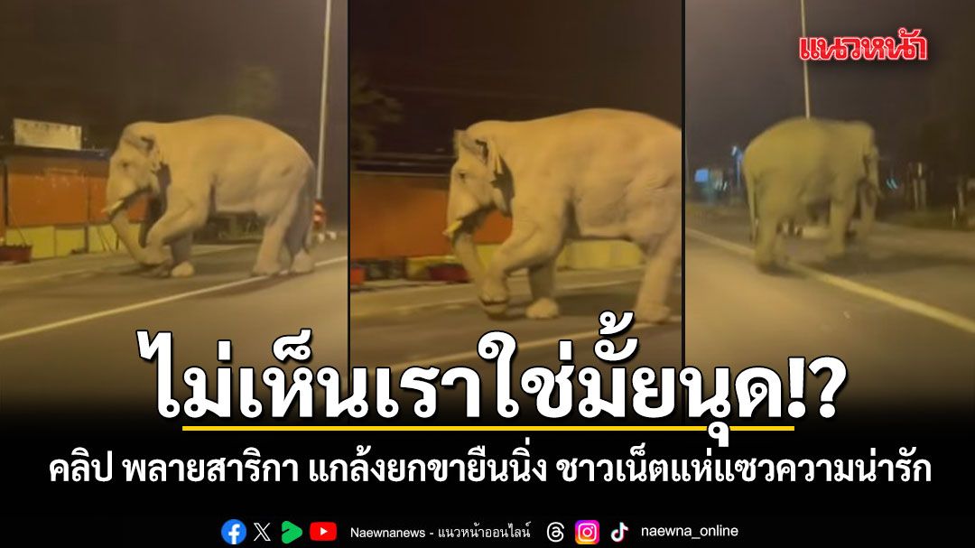 ไม่เห็นเราใช่มั้ยนุด!? คลิป พลายสาริกา ช้างป่านครนายก แกล้งยกขายืนนิ่งข้างถนน เมื่อรถขี่ผ่าน ชาวเน็ตแห่แซวความน่ารัก