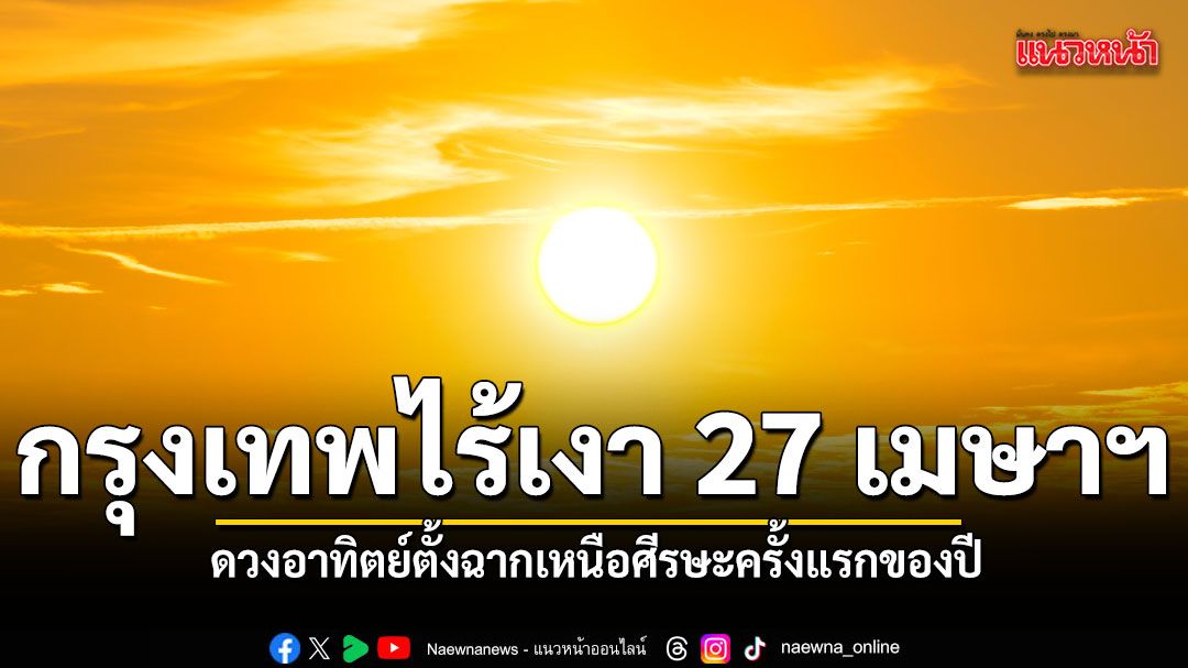 กรุงเทพฯไร้เงา 27 เมษาฯ ดวงอาทิตย์ตั้งฉากเหนือศีรษะครั้งแรกของปี แต่อาจไม่ใช่วันที่ร้อนที่สุด ขึ้นอยู่กับเมฆฝน