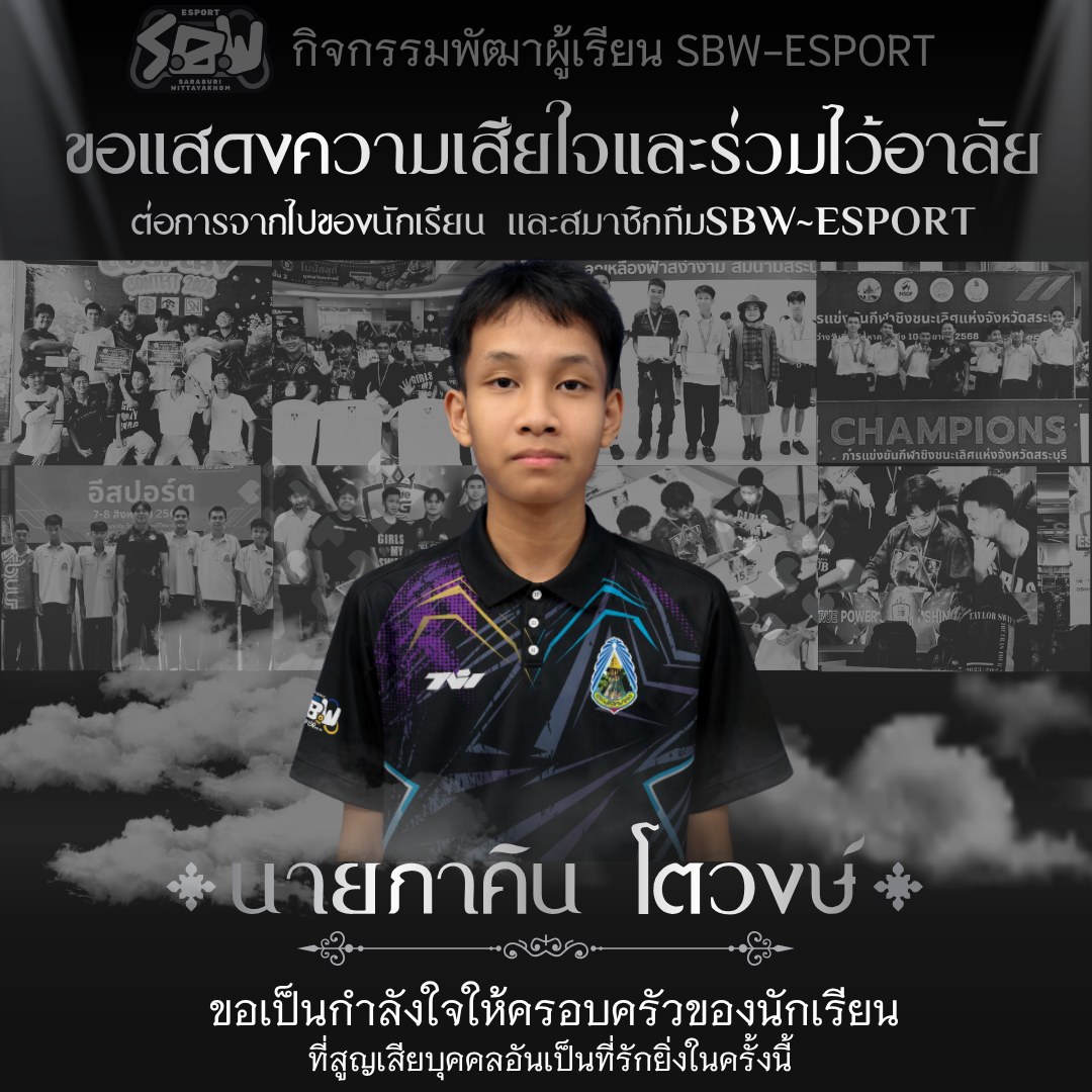 "ทางทีมต้องขอแสดงความเสียใจ และขอบคุณที่นักเรียนปฏิบัติตนเป็นตัวอย่างที่ดี ทั้งในฐานะนักเรียนและนักกีฬาอีสปอร์ตที่มุ่งมั่น สนับสนุนและสร้างชื่อเสียงให้กับโรงเรียนมาโดยตลอด ขอให้น้องเดินทางไปสู่ภพภูมิที่ดี มีแต่ความสุข"