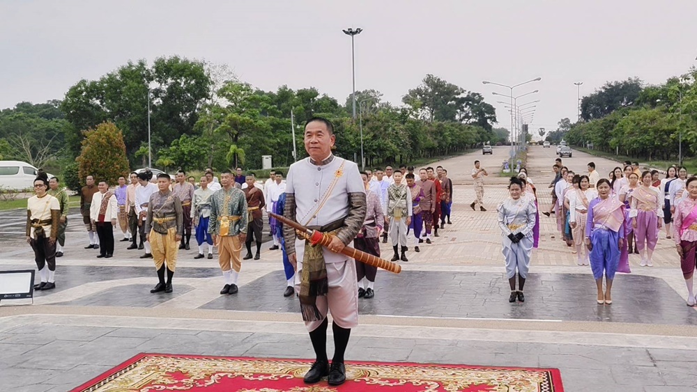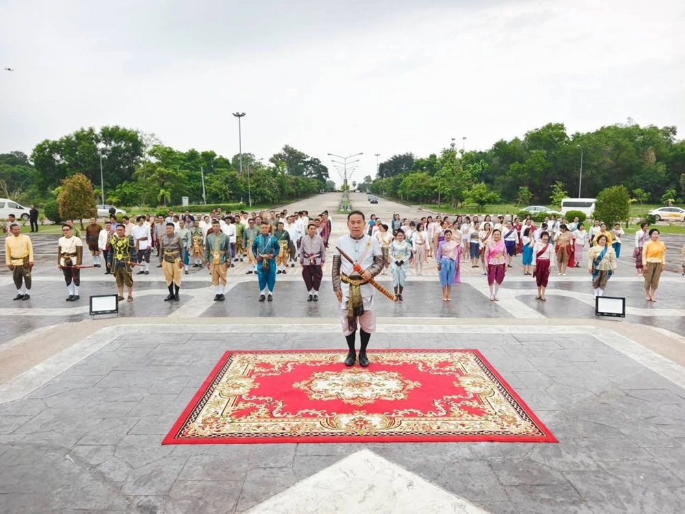 ศาลากลางบึงกาฬสุดคึกคัก ผู้ว่าฯ นำทีมข้าราชการสลัดเครื่องแบบสวมชุดไทยสไตล์ “ออเจ้า” ย้อนยุคแสดงพลังอนุรักษ์วัฒนธรรม พร้อมถวายบังคม ร.5 และมอบทองรางวัลใหญ่กาชาด ก่อนเข้าประชุมตามวาระ
