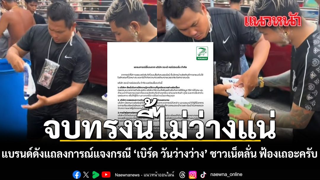 หลังจากที่กลายเป็นกระแสดรามารับสงกรานต์พระประแดงไปแล้วจากการที่ เบิร์ด วันว่างว่าง คอนเทนต์ครีเอเตอร์สายป่วนโดนทัวร์ลงยับ เหตุโพสต์คลิปคว้าถุงแป้งคล้ายกาวยาแนวแบรนด์ดังมาผสมน้ำสาดใส่ผู้คนจนทำเอาชาวเน็ตเดือดจัด หวั่นเกิดอันตรายและถามหาความรับผิดชอบต่อส่วนรวม เหตุการณ์ระอุต่อเนื่องตั้งแต่วันที่ 26 เมษายน 2569 เมื่อภาพการป้ายหน้าด้วยถุงแป้งคล้ายยาแนวว่อนโซเชียลส่งผลให้เจ้าตัวต้องรีบแจงด่วนว่าข้างในเป็นเพียง แป้งมัน ที่จัดฉากซีลถุงเองเพื่อทำคอนเทนต์เรียกยอดไลก์เท่านั้น เพื่อสยบกระแสวิจารณ์เบิร์ดถึงขั้นโชว์ดื่มน้ำผสมแป้งมันจากถุงดังกล่าวกลางไลฟ์สดเพื่อการันตีความปลอดภัย แต่ดูเหมือนสังคมจะยังไม่จบง่าย ๆ เพราะเป็นการสร้างความตื่นตระหนกและพฤติกรรมเลียนแบบที่ไม่เหมาะสม